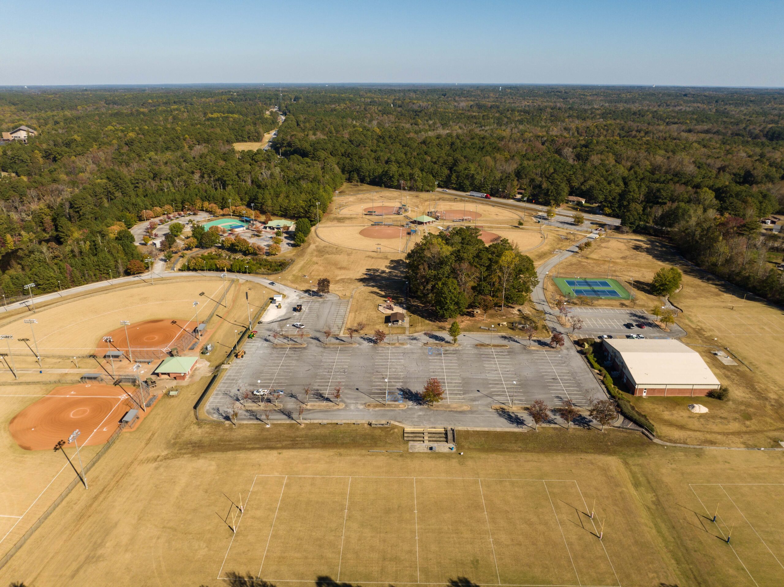 Hunter Complex offers a gymnasium with one classroom, two tennis courts, three football fields, four youth baseball/softball fields, two adult softball fields, an ADA baseball field, a pavilion, a playground, walking trail and an 18-hole disc golf course.