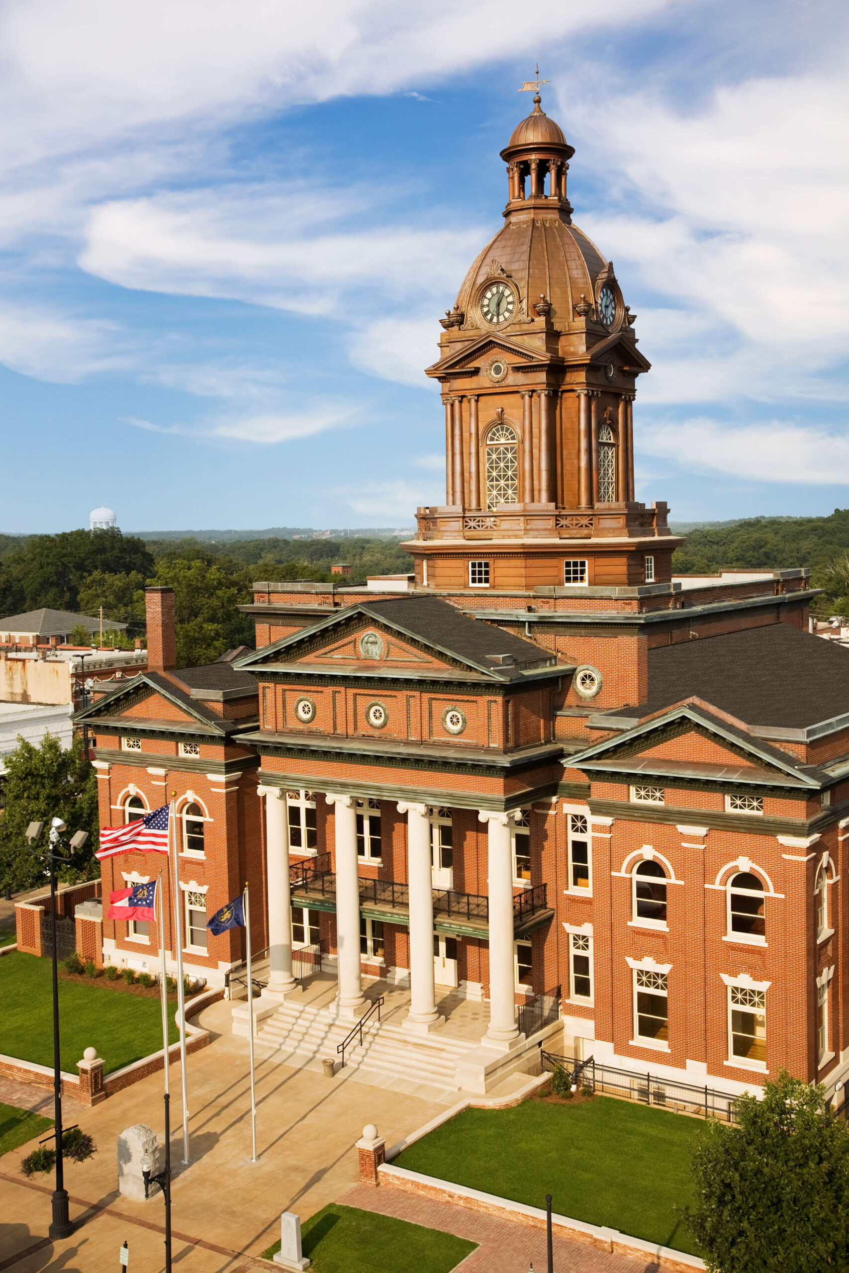 With a copper dome rising 100 feet above street level, this 1904 Classic Revival building towers above Newnan’s town square, but it also has some dark history: It held the famous 1948 Murder in Coweta County trial—subject of several podcasts and a movie.