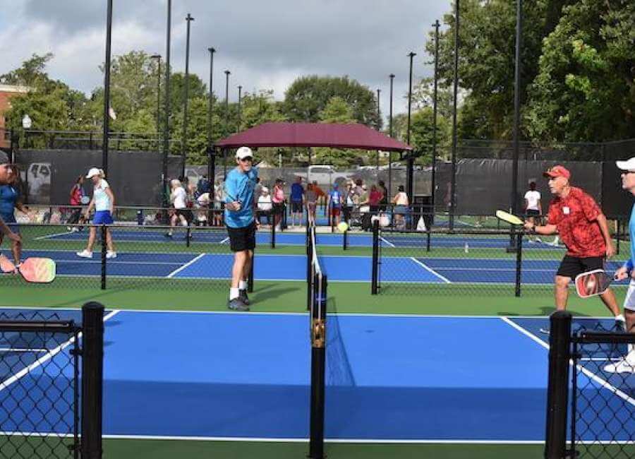 House of Pickleball, or The HOP, is a 15-court pickleball facility located near downtown Newnan. The HOP is a city of Newnan public facility and may be enjoyed by all. Pickleball is a paddleball sport that combines elements of badminton, table tennis, and tennis. Two or four players use solid paddles made of wood or composite materials to hit a perforated polymer ball, much like a wiffle ball, with 26 to 40 round holes, over a net.